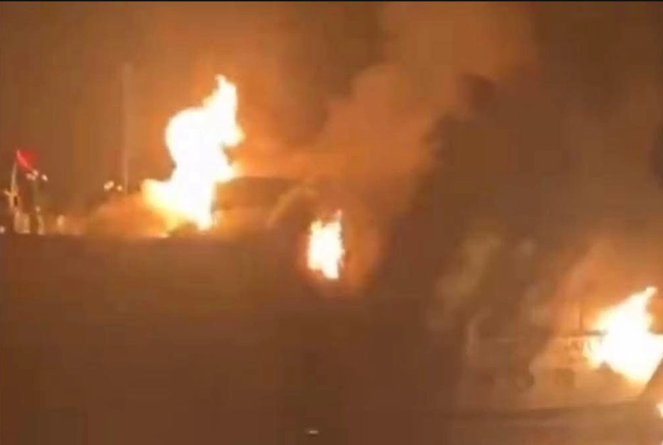 Hình ảnh tàu khi cháy do người dân gần hiện trường ghi lại. Ảnh: Xuân Hoa
