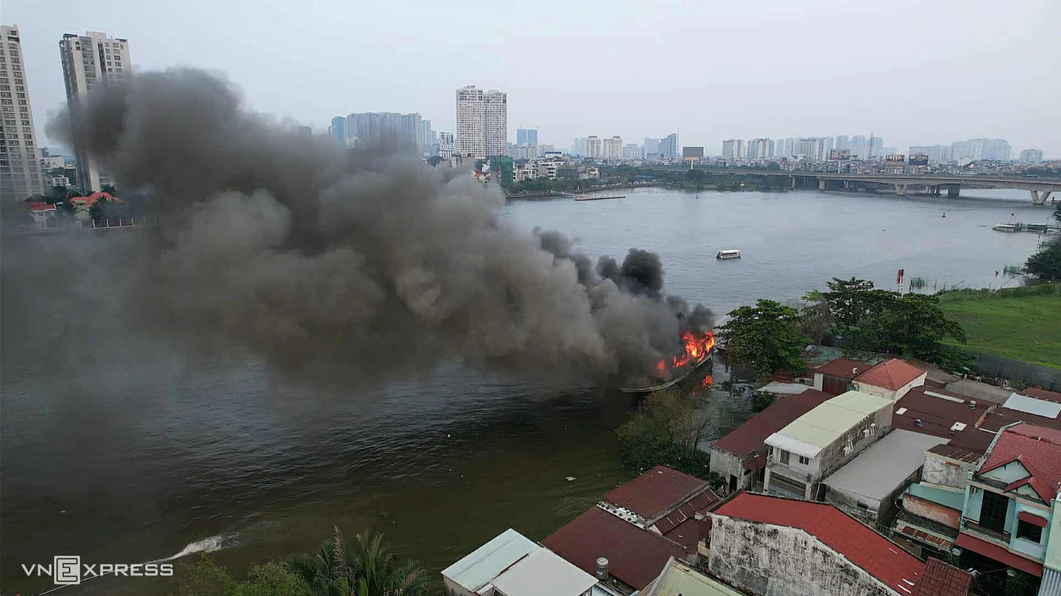 Tàu du lịch có ba tầng, dài khoảng 20 m, bề ngang gần chục mét. Hỏa hoạn xuất phát từ khu vực giữa tàu sau lan ra phần boong.