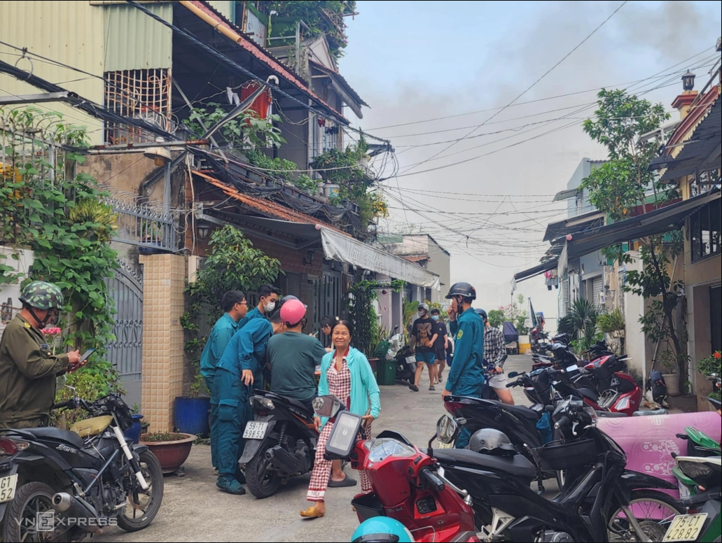 Khu vực cháy gần khu dân cư, khói tỏa vào mù mịt khiến một số người lo lắng.