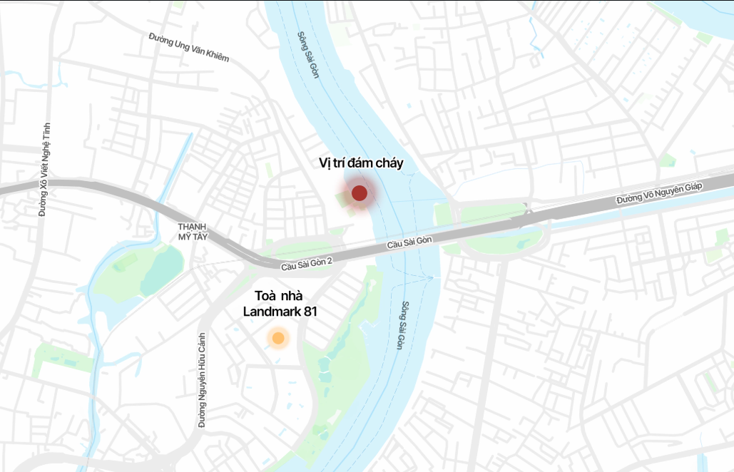 Đám cháy cách Landmark 81 - tòa nhà cao nhất Việt Nam, khoảng một km.